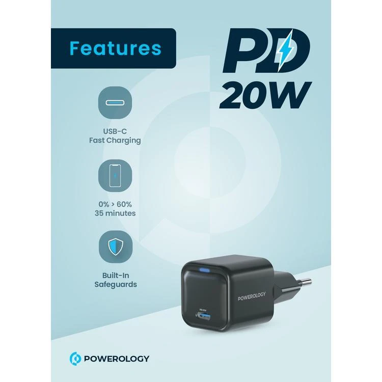 شارژر دیواری 20 وات پاورولوجی مدل PWCUQC015؛ سرعت و ایمنی در هر بار شارژ