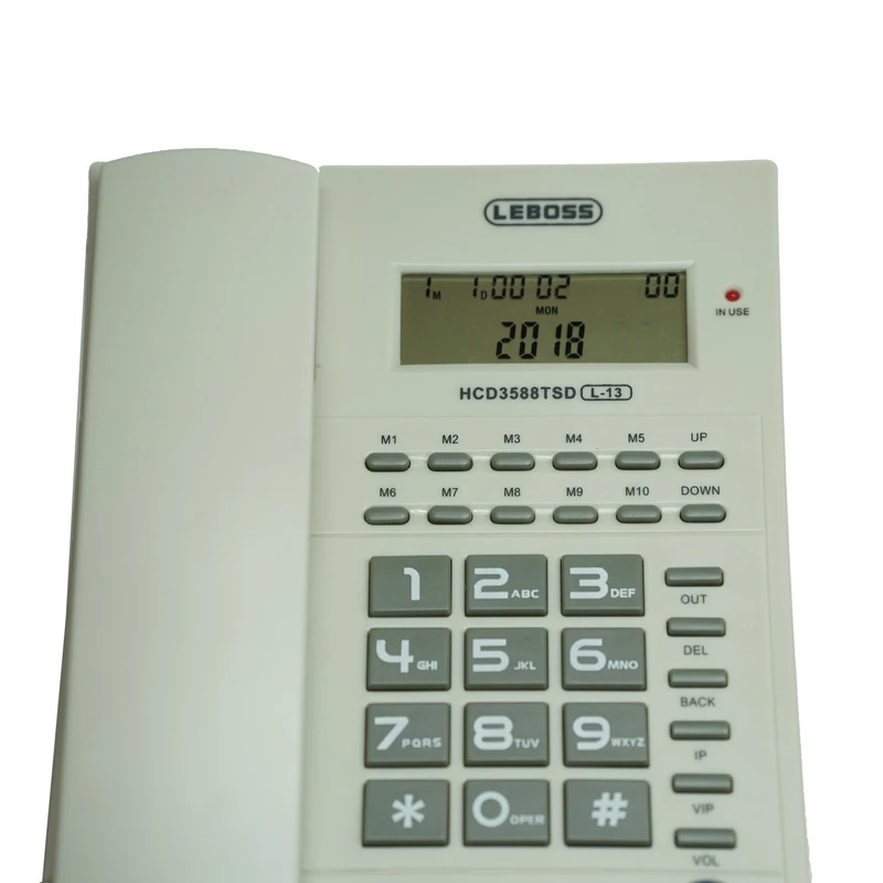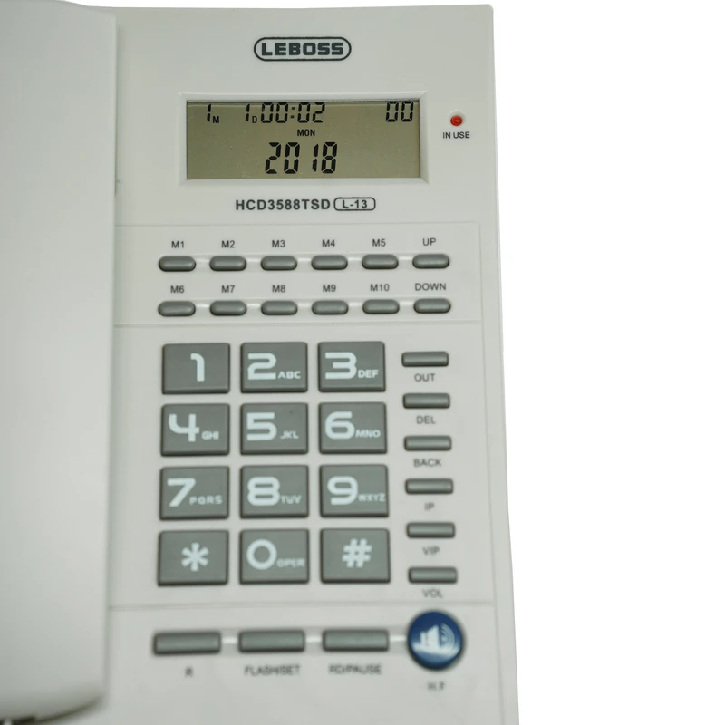 تلفن لبوس HCD3588TSD L-13 با طراحی زیبا و حرفهای خود، جلوهای خاص به میز کار یا فضای منزل میبخشد. این تلفن در ابعاد مناسب و رنگبندی کلاسیک عرضه شده و بدنهای مقاوم از جنس پلاستیک باکیفیت دارد. دکمههای نرم و خوشدست، شمارهگیری و کاربری روزانه را آسان و لذتبخش میکنند.